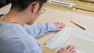 この過程で、裂地や和紙の素材構造に対する新しい発見もあります。。