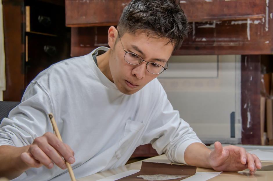 そこでの修行を経て、丸山表具店に加わりました。約20年にわたり、様々な表装に携わりながら、日々技術を磨き続けています。